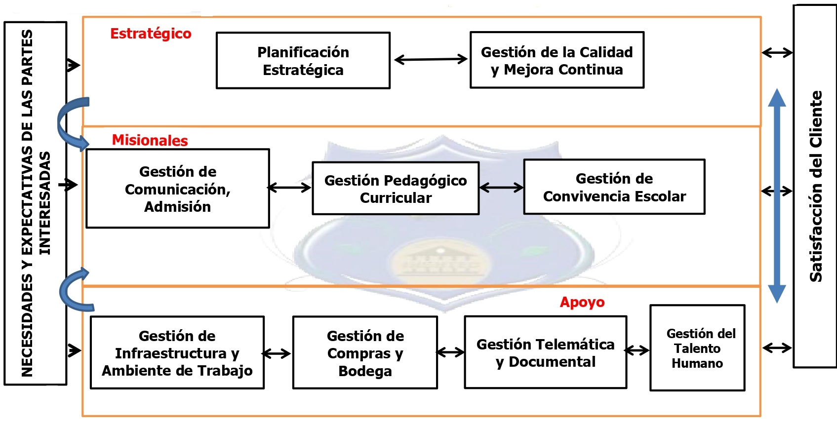 La metodología de evaluación permanente ha permitido un crecimiento institucional significativo, su sistema de gestión de calidad organiza los procesos estratégicos, misionales y de apoyo considerando de esta forma las necesidades y expectativas de las partes interesadas y el logro de la satisfacción de la comunidad educativa, a través de la mejora continua.
